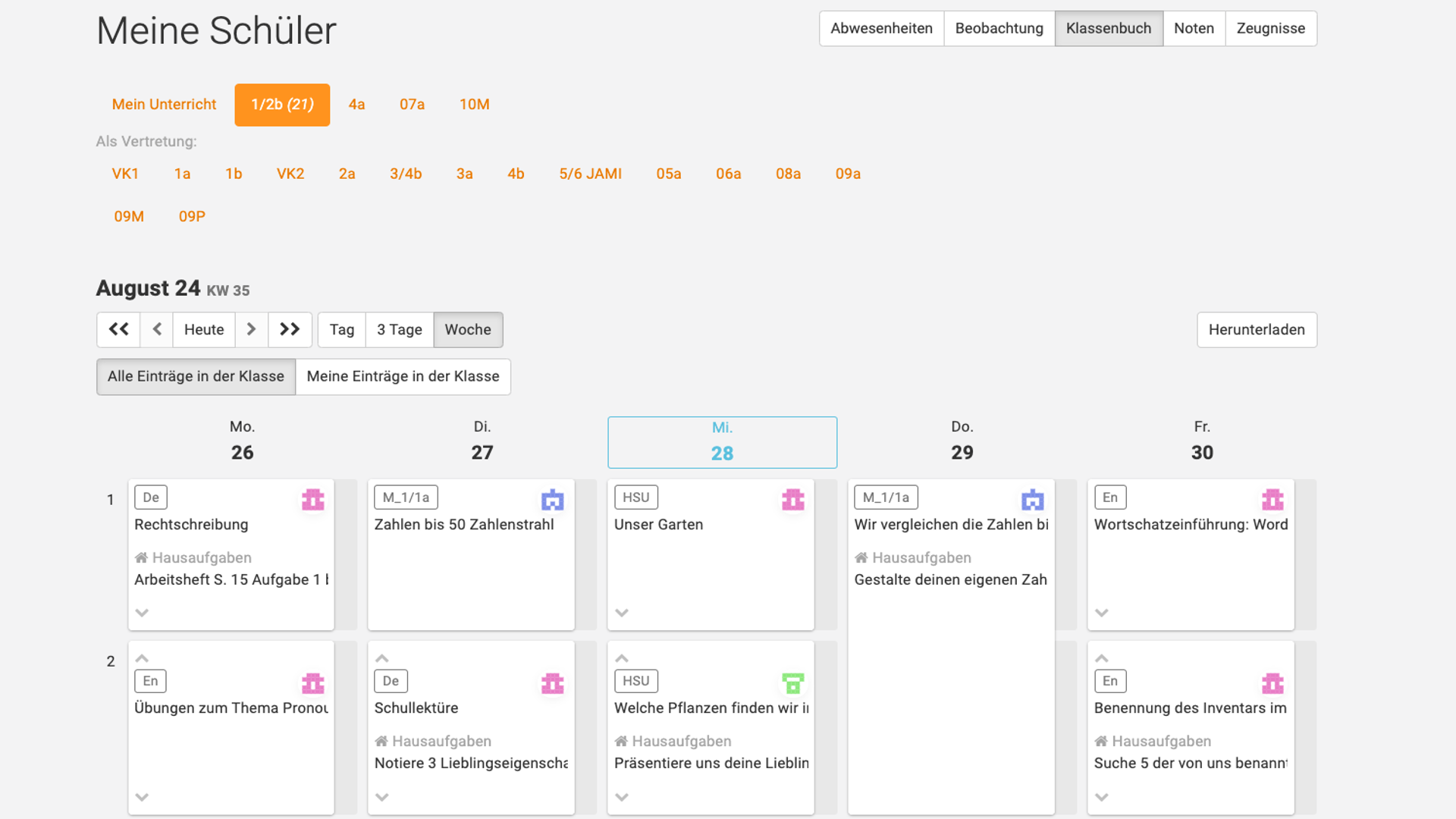 Das integrierte digitale Klassenbuch unterstützt Lehrkräfte bei der Unterrichtsplanung, der Dokumentation und der Organisation des Schulalltags – jederzeit zugänglich und einfach zu bedienen. Sämtliche Dokumentationen können auch jederzeit als PDF-Dokument heruntergeladen werden und somit auch offline verfügbar.